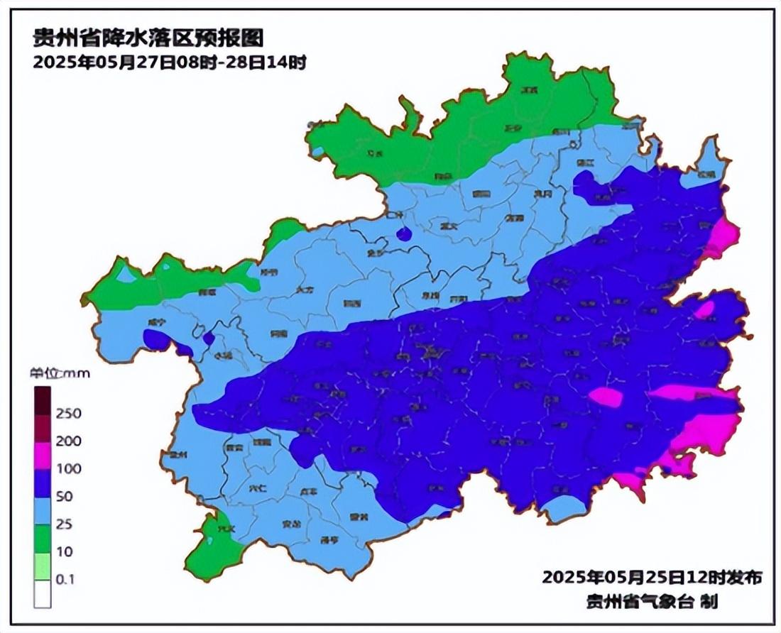 近期,贵州处于多雨模式,明天(5月27日)起将迎新一轮强降雨天气过程,贵阳、同仁等地局地有暴雨,部分强降雨区域与前期降雨偏多地区有所重叠,需警惕降雨叠加致灾。