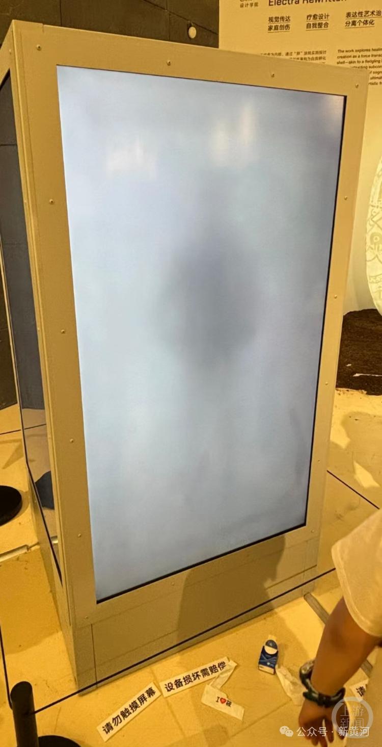 正在参展的央美本科生申同学告诉记者,自己前两天都在布展现场,后面忙着写论文,但也会去现场检查,“一开始想的是体现作品本身,并没有加警示标识,但第三天就不得不加了警示牌,第四天还加了警戒线,都丝毫没用。”