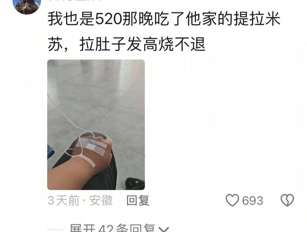 但最近,摆摊提拉米苏也陷入了食品安全争议。安徽亳州市蒙城县多位消费者在社交媒体上反映,自己购买了当地一家网红流动摊贩出售的提拉米苏后,出现身体不适症状,此事件引发广泛关注。
