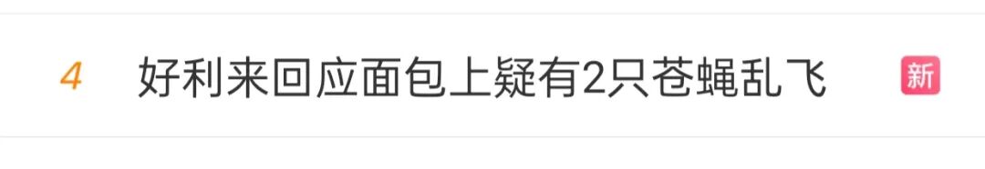 近日,浙江宁波一名网友发布视频称,在当地好利来门店购买面包时,发现一盘试吃面包内有两只绿头苍蝇被盖子罩住。相关话题#好利来回应面包上疑有2只苍蝇乱飞 登上微博热搜。