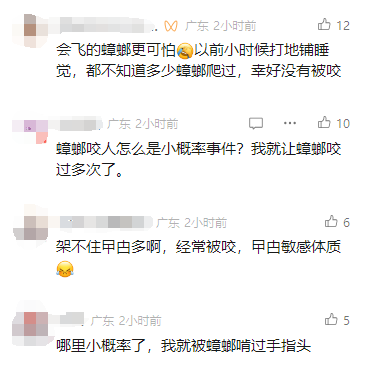 此前,茂名疾控曾在微信公众号中介绍,夜里蟑螂出来咬人,是小概率事件。万一真的被咬不用慌,蟑螂本身没有毒性,被咬后通常除了有些红肿也无大碍。但有些人会对蟑螂的分泌物和粪便中的蛋白过敏,引发比较严重的过敏反应,一旦过敏,一定要及时就医。