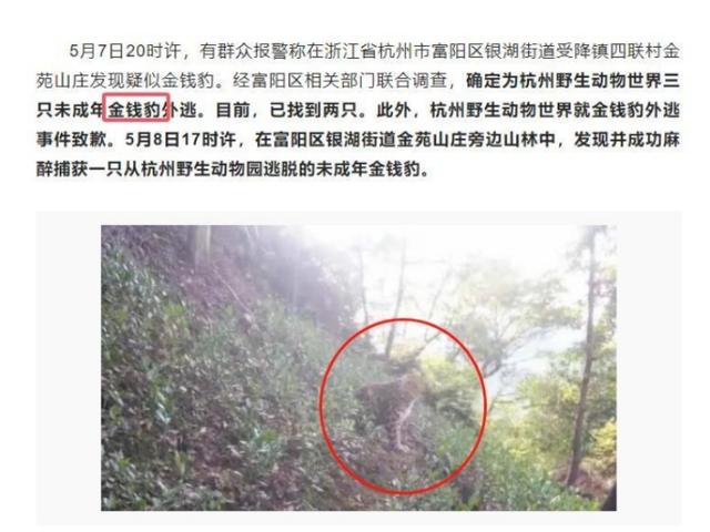 杭州金钱豹出逃事件最初进入公众视野是在2021年5月6日。
