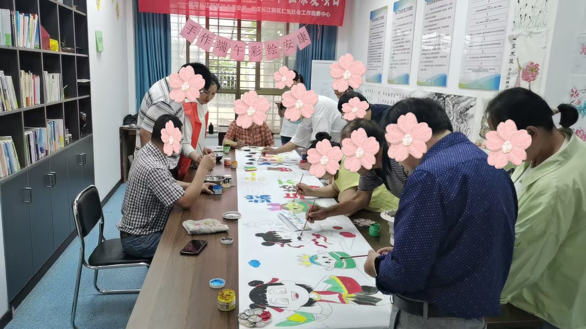 2025年5月27日上午,在武汉长江新区阳逻街残疾人阳光驿站举办了2025年“手作端午,彩绘安康”端午主题活动。阳逻街残疾人阳光驿站的康复学员及家属、精神障碍社区康复人员、社区志愿者参加了此次活动。