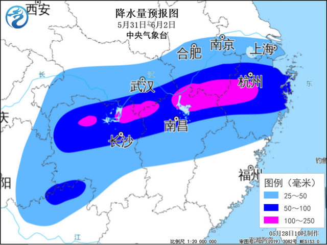 中央气象台预计,5月31日至6月2日,江汉、江南、华南北部及西北地区东部、西南地区等地有降雨过程,其中湖北东南部、湖南北部、安徽南部、江西北部、浙江中西部及云南西北部等地部分地区有暴雨、局地大暴雨(累计降雨量100~160毫米,局地200毫米左右),并伴有局地短时强降水、雷暴大风等强对流天气。