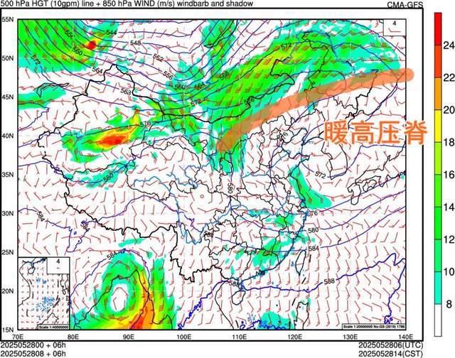 ↑ 上图橙色线条为高压脊位置示意