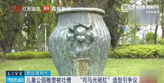 近日,昆山一儿童公园内一组“司马光砸缸”主题雕塑因造型夸张被市民吐槽。雕塑中人物形象与正常儿童相去甚远,被形容为“像猴”。市民认为,作为儿童公园的景观雕塑,应更注重教育意义和大众接受度。这样的一组雕塑在网上也引起了网友的讨论,有网友说“猴子一样”“确实难看”,有网友说“比较抽象,欣赏不来”。