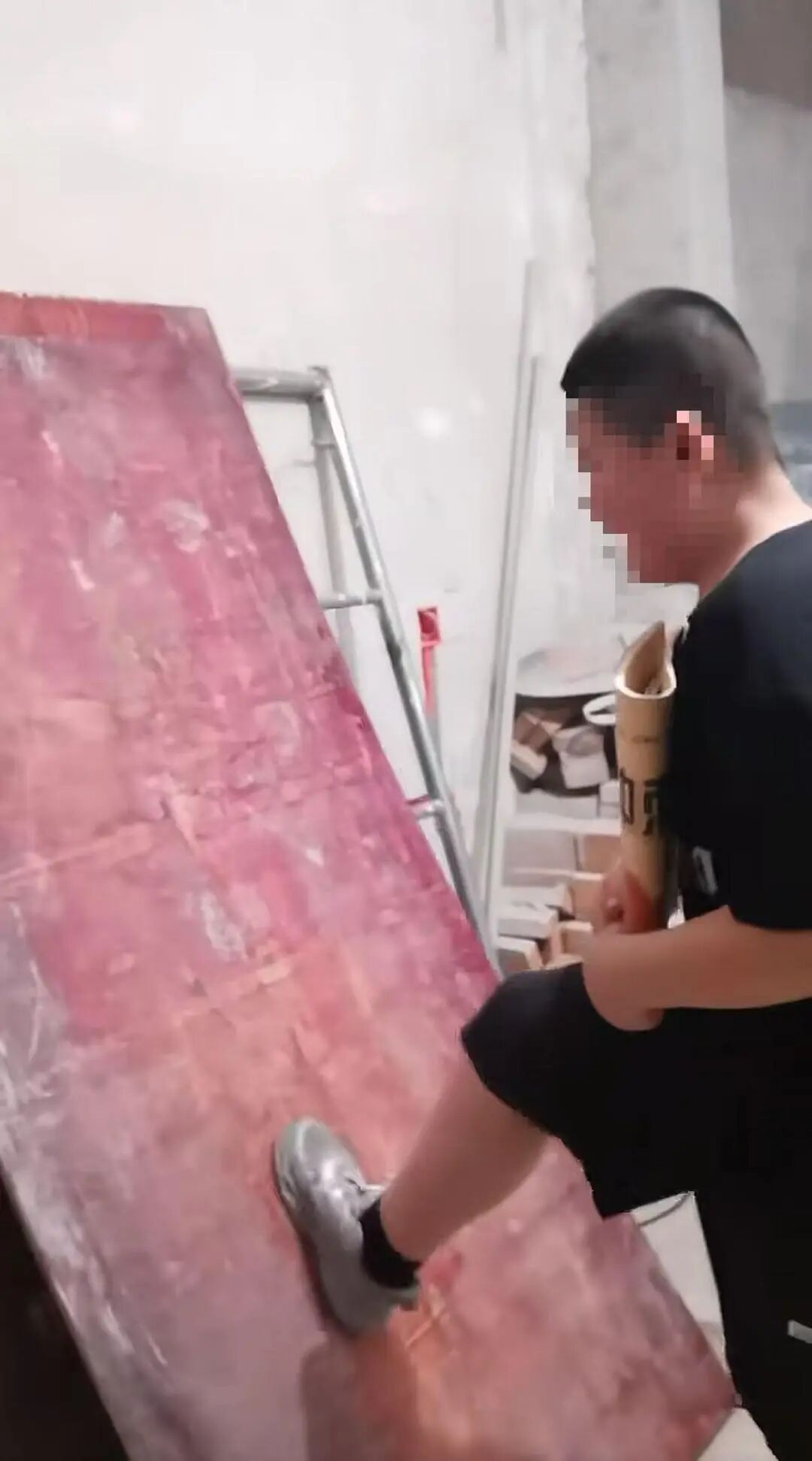 通过查看该家长的账号主页,记者看到,5月22日,该家长曾发布一则视频,即其带着“小胖”来到王先生正在装修的家,让“小胖”拿着送来的试卷对着一旁的木板踢100下。此后多条视频,则是“小胖”撕答案、做试卷等视频。