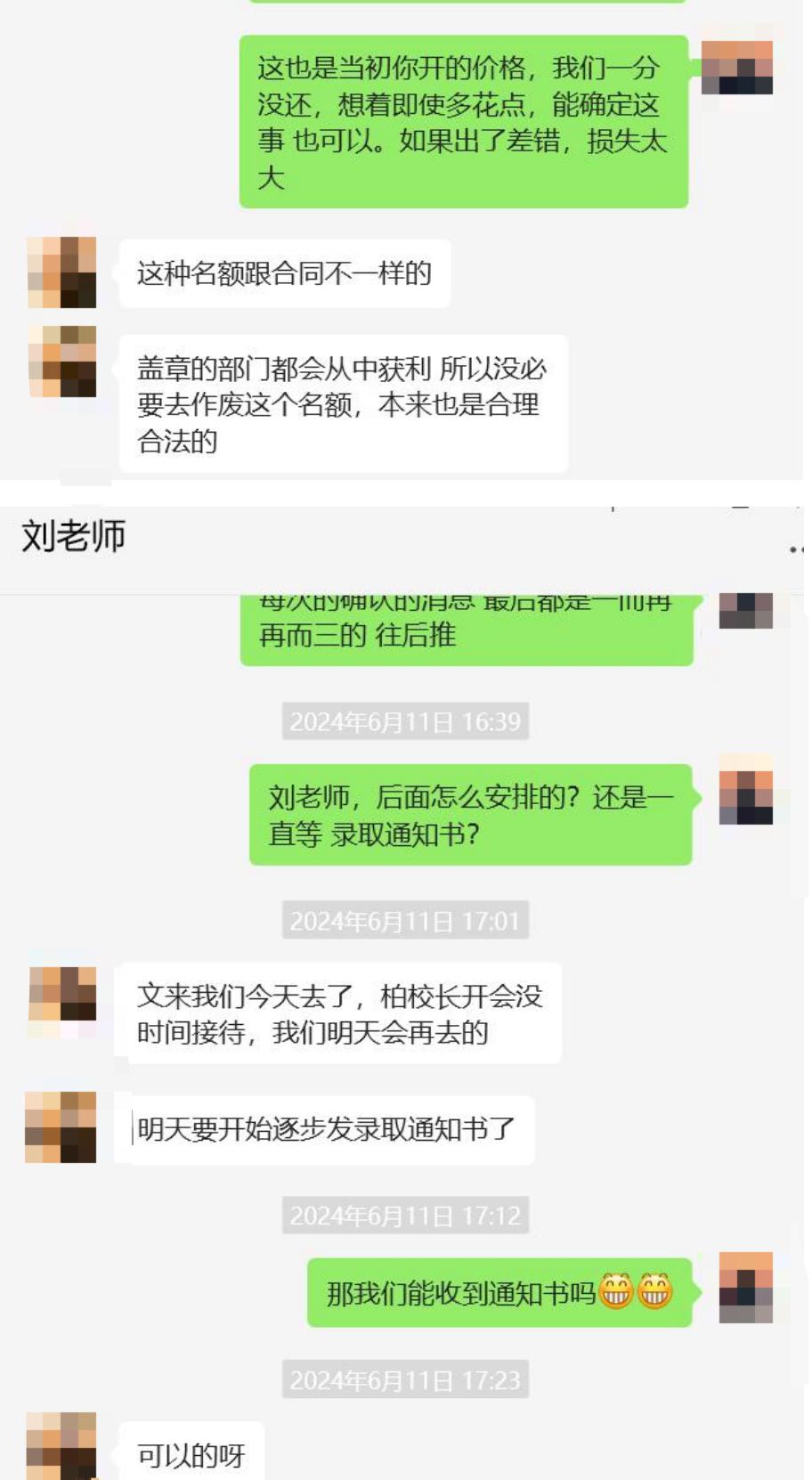 “名单公示后不久,我收到了学校的电话,告知我孩子的报名材料不齐全。”王先生说,“我联系了刘某询问情况,她说是孩子证件照的小问题,重新提交即可,她去协调处理,并多次保证‘一定能通过验证’。”