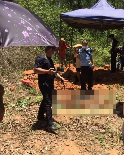▲2020年警方对受害者吴德芳开棺验尸。受访者供图