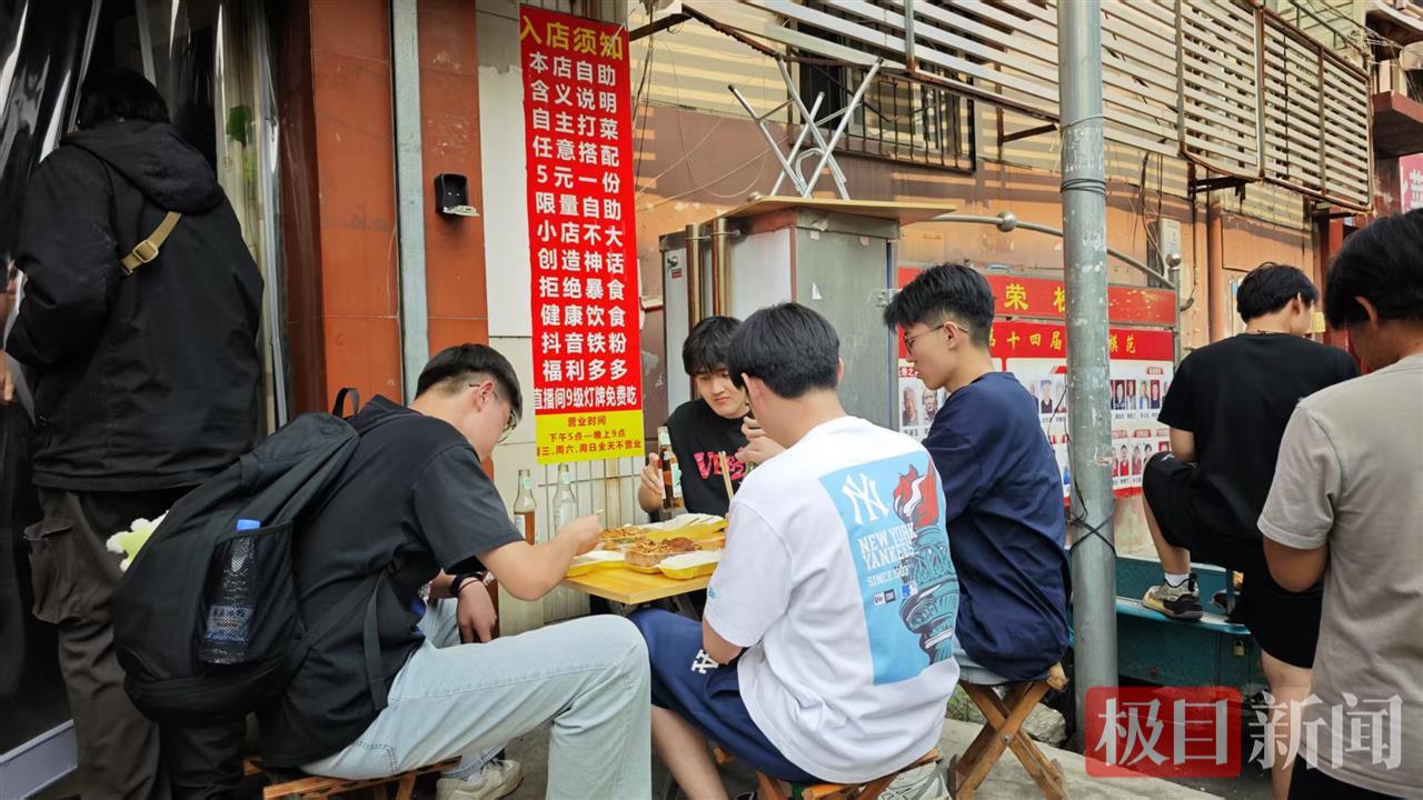 来自济南某高校的马同学告诉极目新闻记者,他是从社交平台上了解到这家快餐店的走红历程,所以专程和两名同学一起来就餐体验。