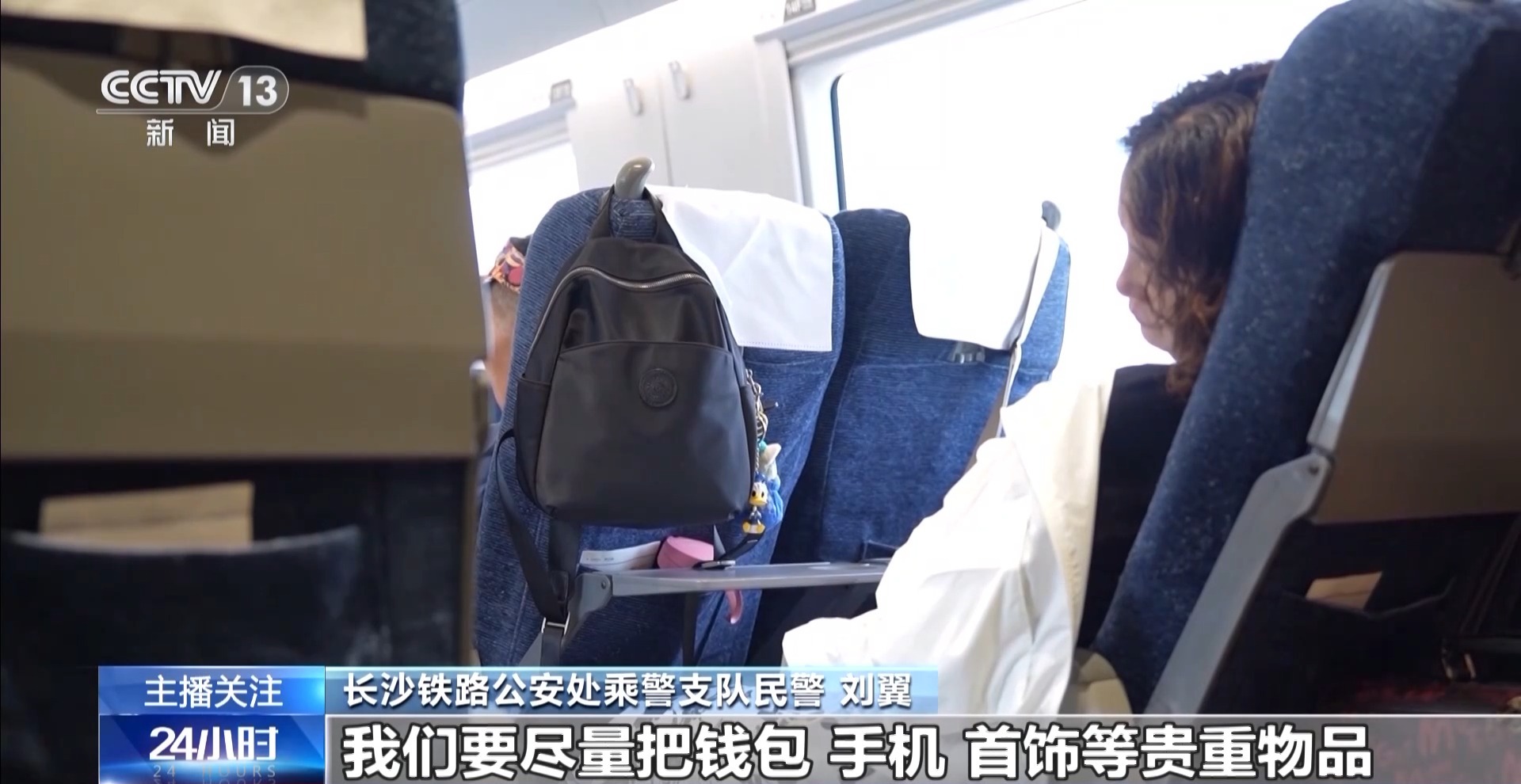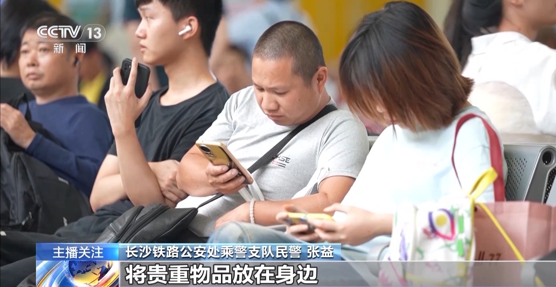 长沙铁路公安处乘警支队民警 张益:比如有的旅客在候车时,将贵重物品放在身边,却因为玩手机或打瞌睡而没有留意,不法分子就可能顺手将贵重物品拿走。特别是现在大家对手机充电的需求较大,一旦手机放置在无人看管的位置充电,就很容易丢失被盗。还有在列车上,一些旅客把行李放在头顶行李架上,却长时间不关注,不法分子可能在列车停靠或车厢内人员走动时,趁机偷走行李中的贵重物品。