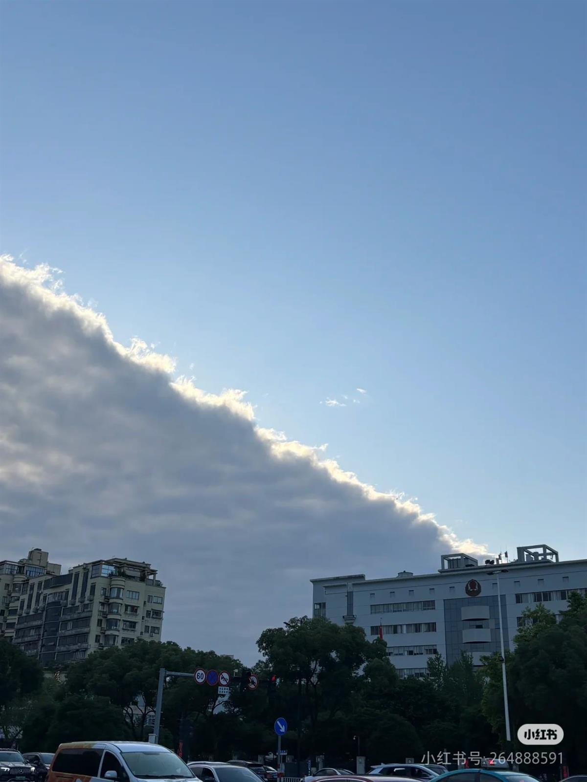 5月29日傍晚,浙江温州不少市民发现,天空中出现一半蓝天一半云的景观。有网友以为这预示着即将发生天气的突变。