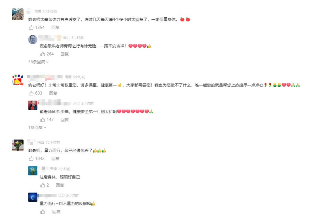 网友纷纷留言表示关心,“隔着屏幕都感觉疼”“希望俞敏洪保重身体”“俞老师量力而行”。