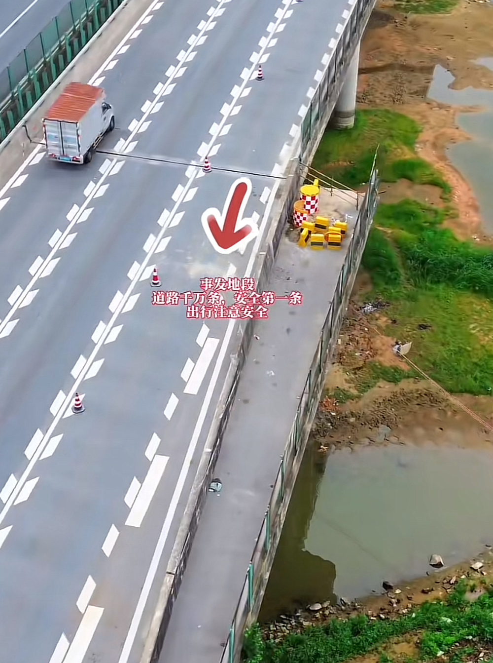 另据广东广播电视台,事发后事故现场右侧两条车道已被围蔽,断头路新增一排石墩并做好警示。