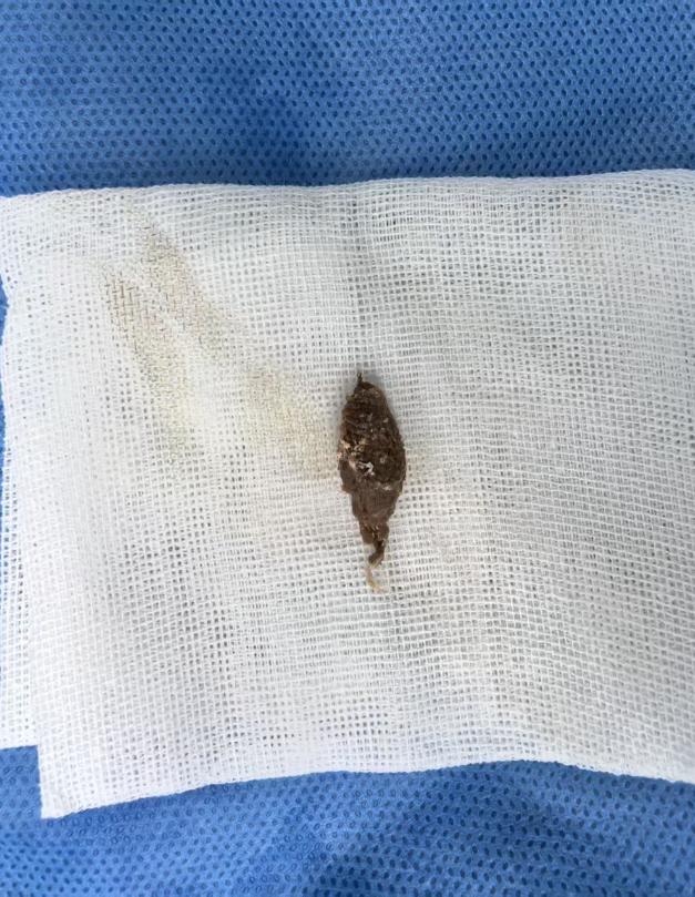 接受急诊内镜食管内异物取出术以及进一步治疗。