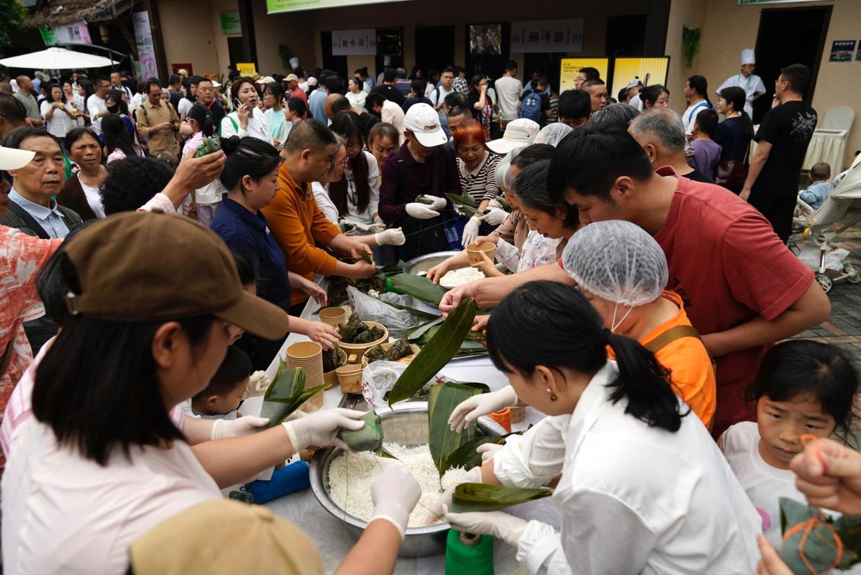 包粽子、做香囊、编红绳……走进位于成都市青羊区的成都国际非遗节主会场,端午节氛围浓厚,非遗展台前人潮涌动。
