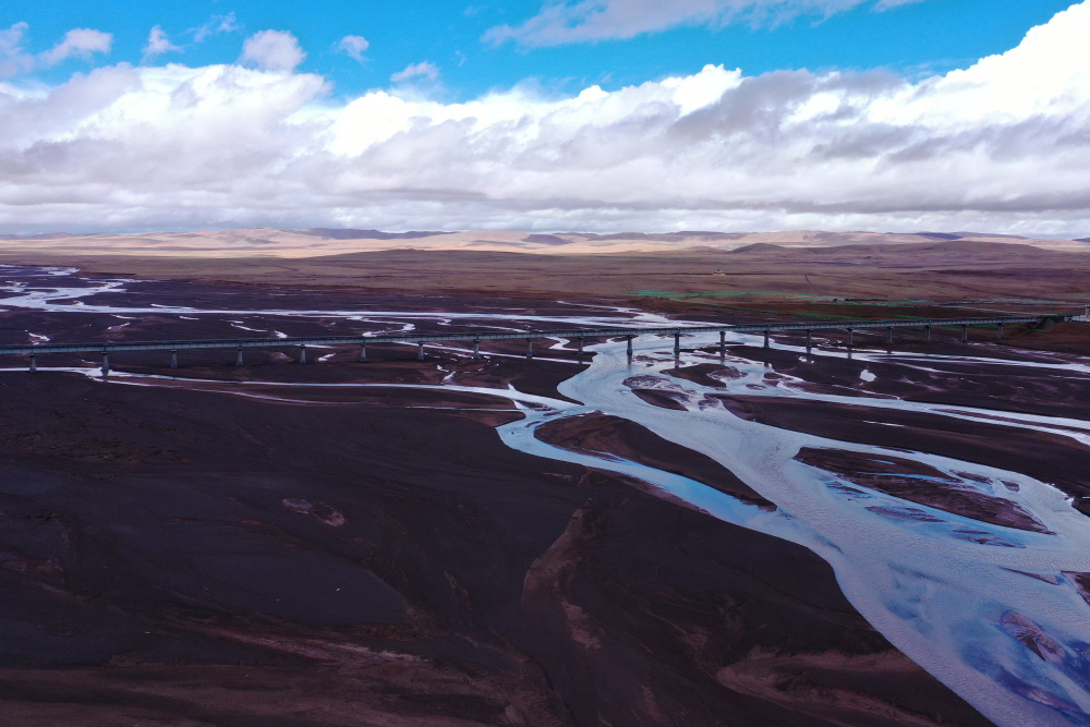 这是5月29日拍摄的流经唐古拉山镇的长江正源沱沱河(无人机照片)。新华社记者 陈杰 摄