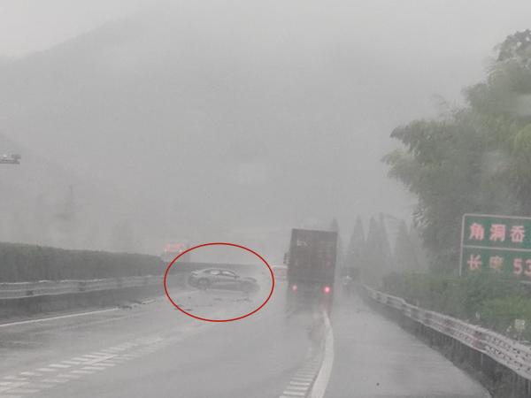 昨晚大雨来袭,甬莞高速上有车辆因轮胎打滑发生事故。