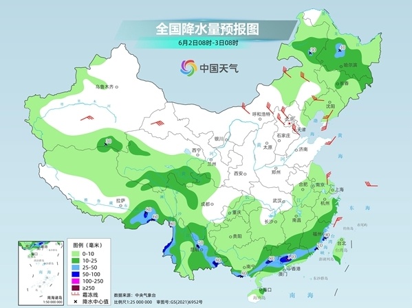 今天(6月2日)是端午假期最后一天,南方强降雨区域有所南压,华南多地雨势较强,且伴有强对流天气,公众需关注预警预报信息,注意出行安全。同时,华北、黄淮等地将开启升温模式,30℃以上的区域增多,明后天局地还可能有高温冒头,需注意防暑降温。
