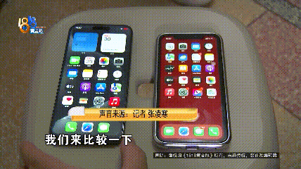 记者:左边是杨先生在网上买的手机,右边是记者同事的苹果手机,我们来比较一下。在杨先生手机上点开这个所谓的苹果商城,有一个百度手机助手的页面,接下来是我同事的苹果手机,点开苹果商城,页面是这样的。