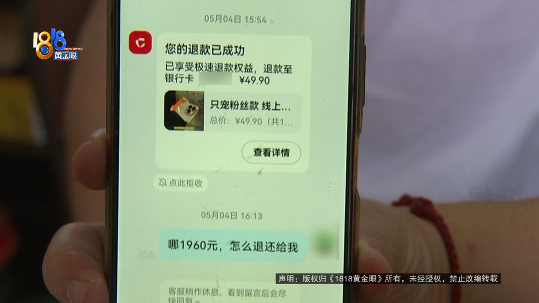 杨先生:还有一千九百六十块,他说没办法退给你,是线下支付的。我说平台要监管,他说第一时间打电话也不回,信息也不回。