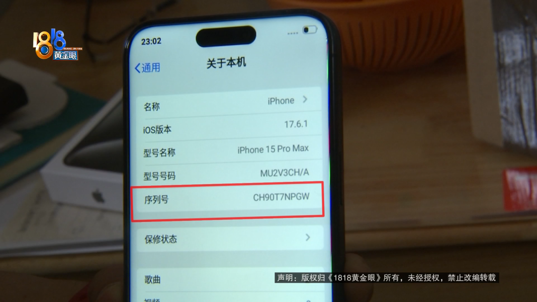 按照苹果客服提到的方法,记者检查了杨先生买的这部手机,“关于本机”页面上有一个序列号,但外包装盒上没有序列号,盒子里也没有三包卡。