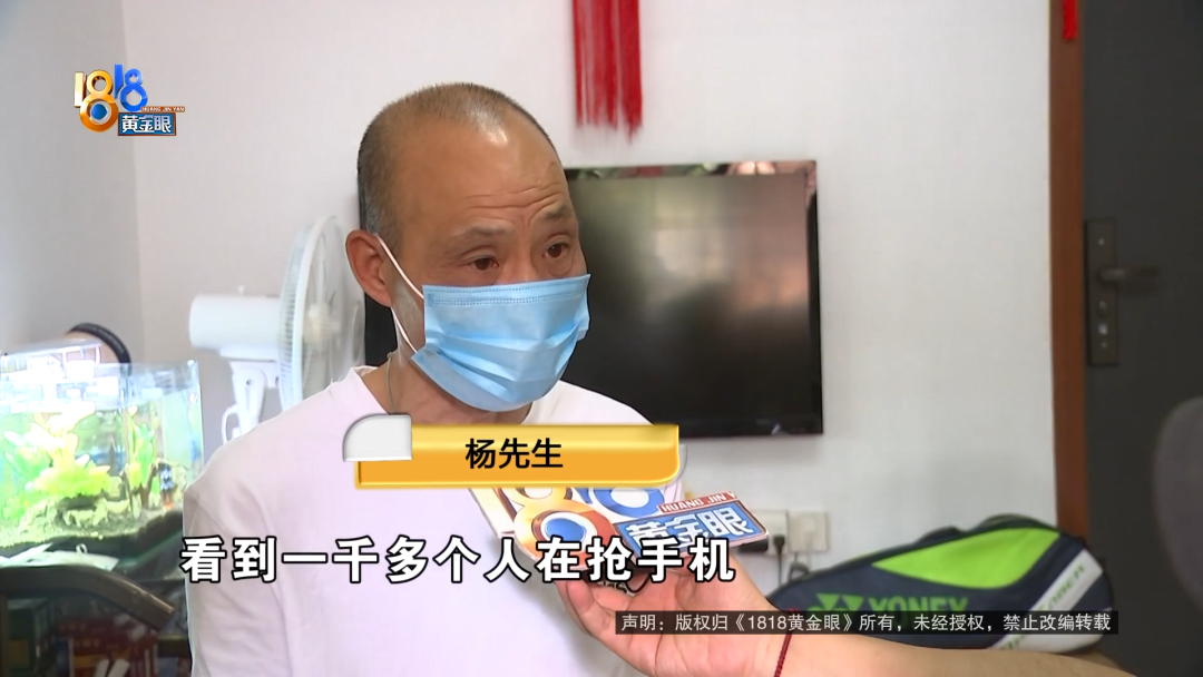 杨先生:看到一千多个人在这里抢手机,我好奇这么便宜,正常这个苹果手机要四千多。