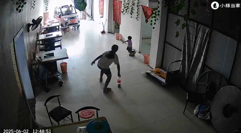 6月2日,河南周口一餐厅老板在社交平台发布一段视频,当天中午1时许,一辆“老头乐”(老年代步电动车)从室外冲入餐厅,撞碎了餐厅玻璃门,最终撞墙后停下。
