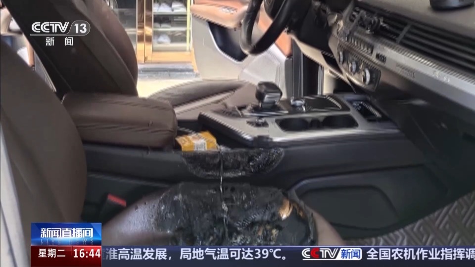 后经过核实,沈先生车辆的车顶、中控台以及副驾驶座椅被部分烧损。