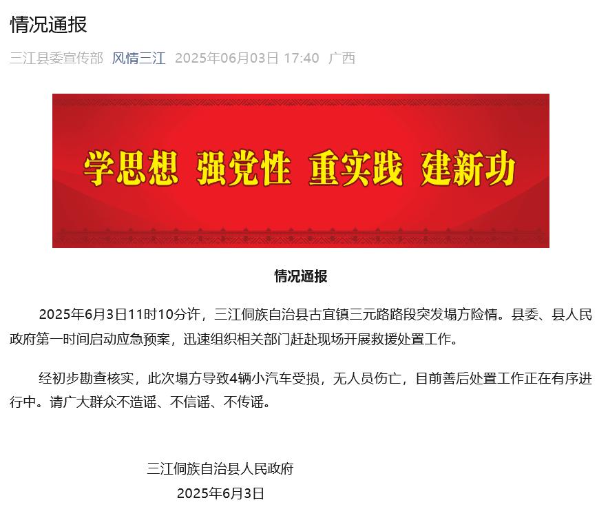 6月3日,广西柳州市三江侗族自治县人民政府发布情况通报:
