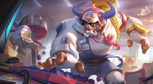 本次联动皮肤以小刘鸭形象及风格为基础进行设计。牛魔化身狂热的健身达人小牛鸭,休闲酷帅的健身服搭配舒适运动鞋,武器化作他手中的哑铃。