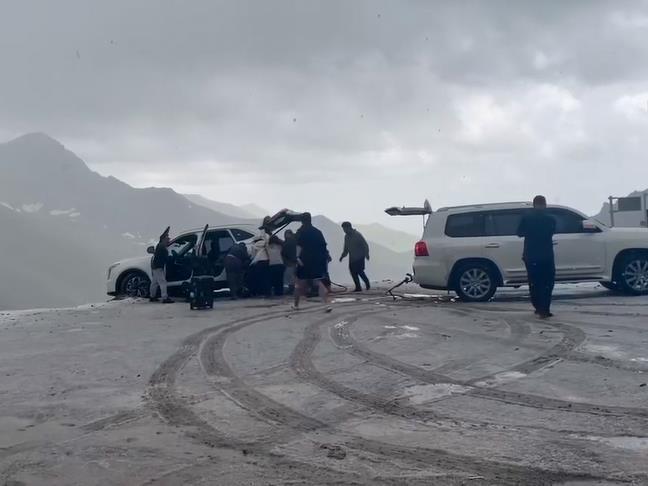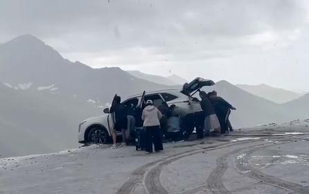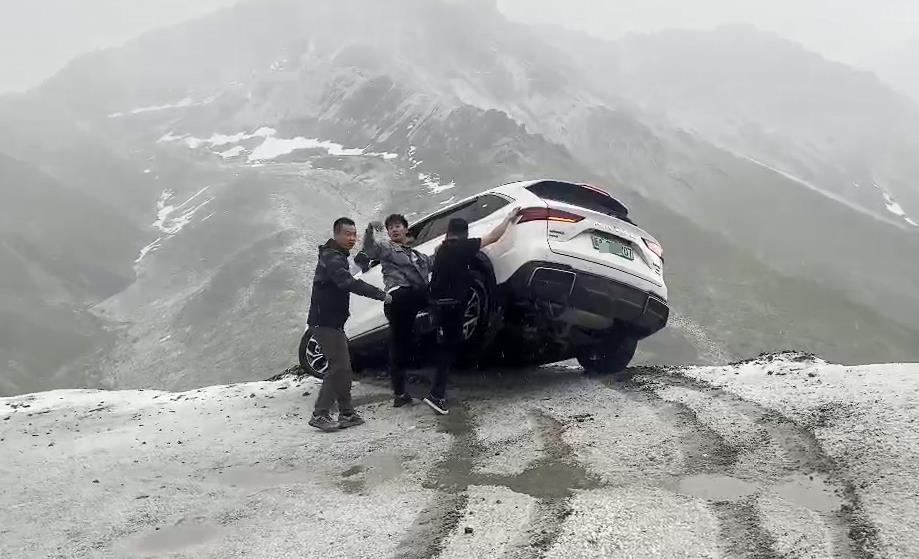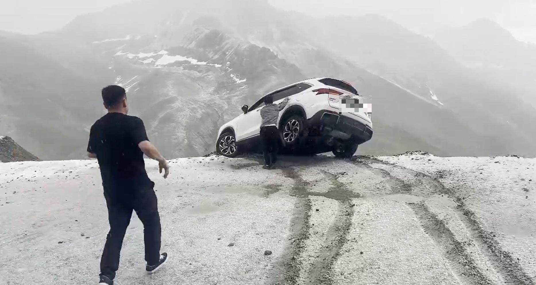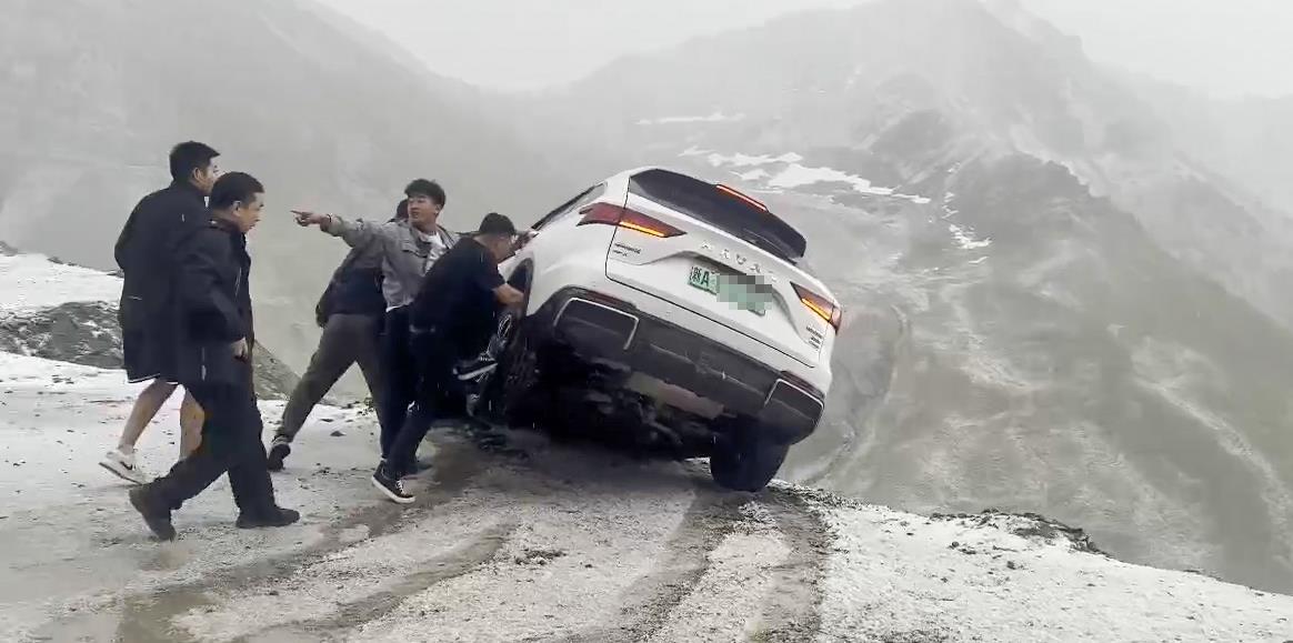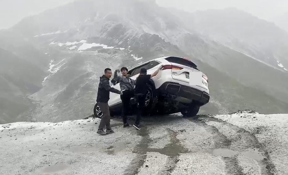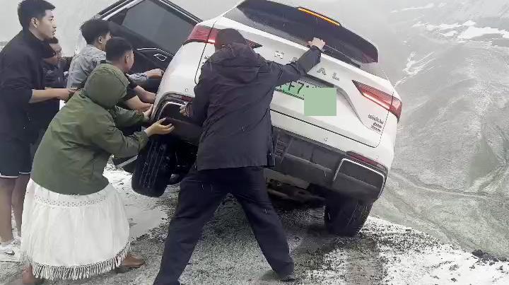 4日17时50分许,新疆独库公路发生感人一幕。纷飞的大雪中,一辆汽车悬于道路边缘,车尾翘起随时可能会滑下悬崖。在众多陌生人的帮助下,人车成功脱险。