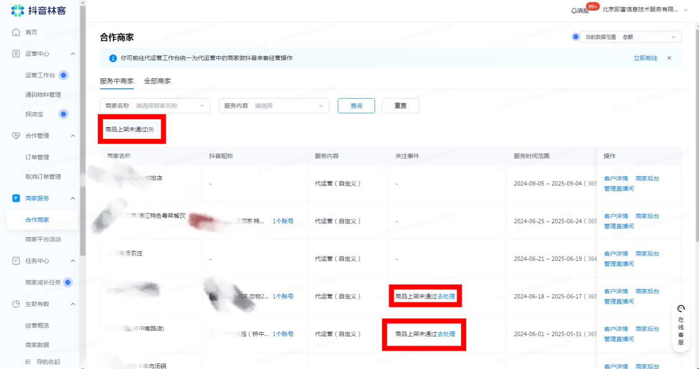 只见“抖商林客本地生活服务商”招牌下,印着显著的抖音logo标识。范姓老板一身名牌,开着宝马750。交谈中,他叫来一名阮姓男士,称是公司技术总监。小花此前做过功课,知道抖音服务商必须有单独的林客系统。