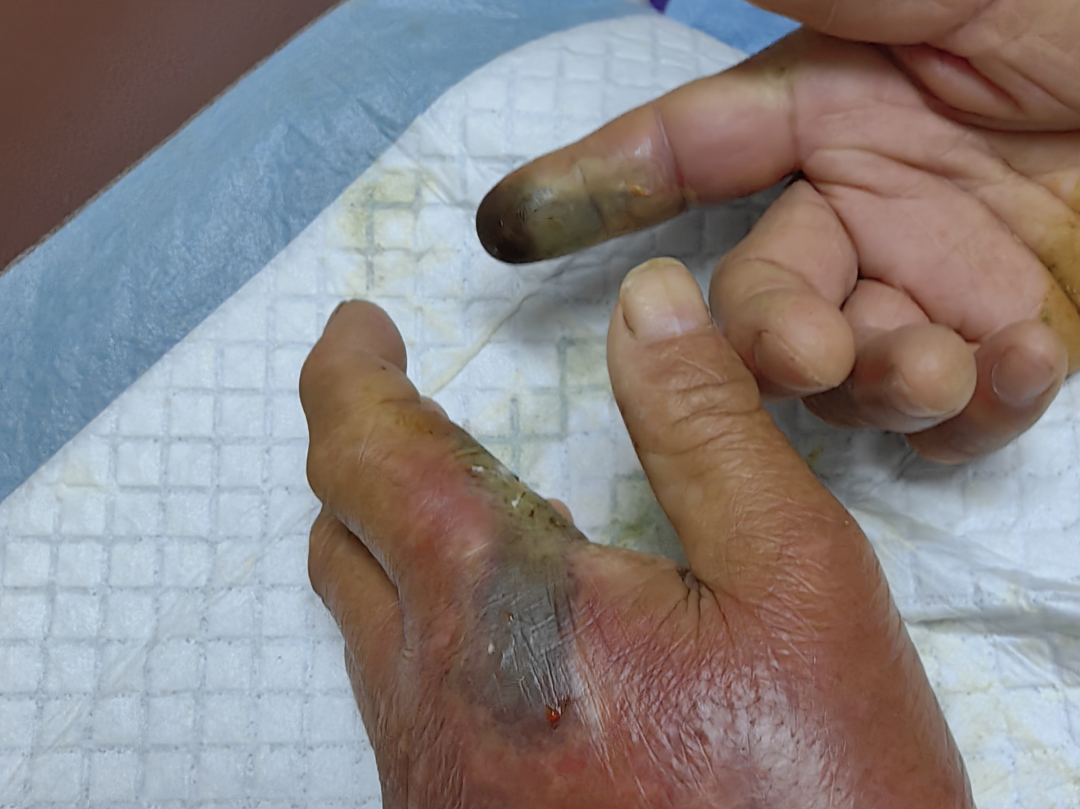 于是,王大伯忍着疼痛用左手去抓蛇,可能是因为紧张,或者害怕,在抓的时候没有抓稳,蛇又“顺便”在左手来了一“口”,吓得他赶紧把蛇甩了出去,家里人见状赶紧把王大伯送到杭州市中医院治疗。