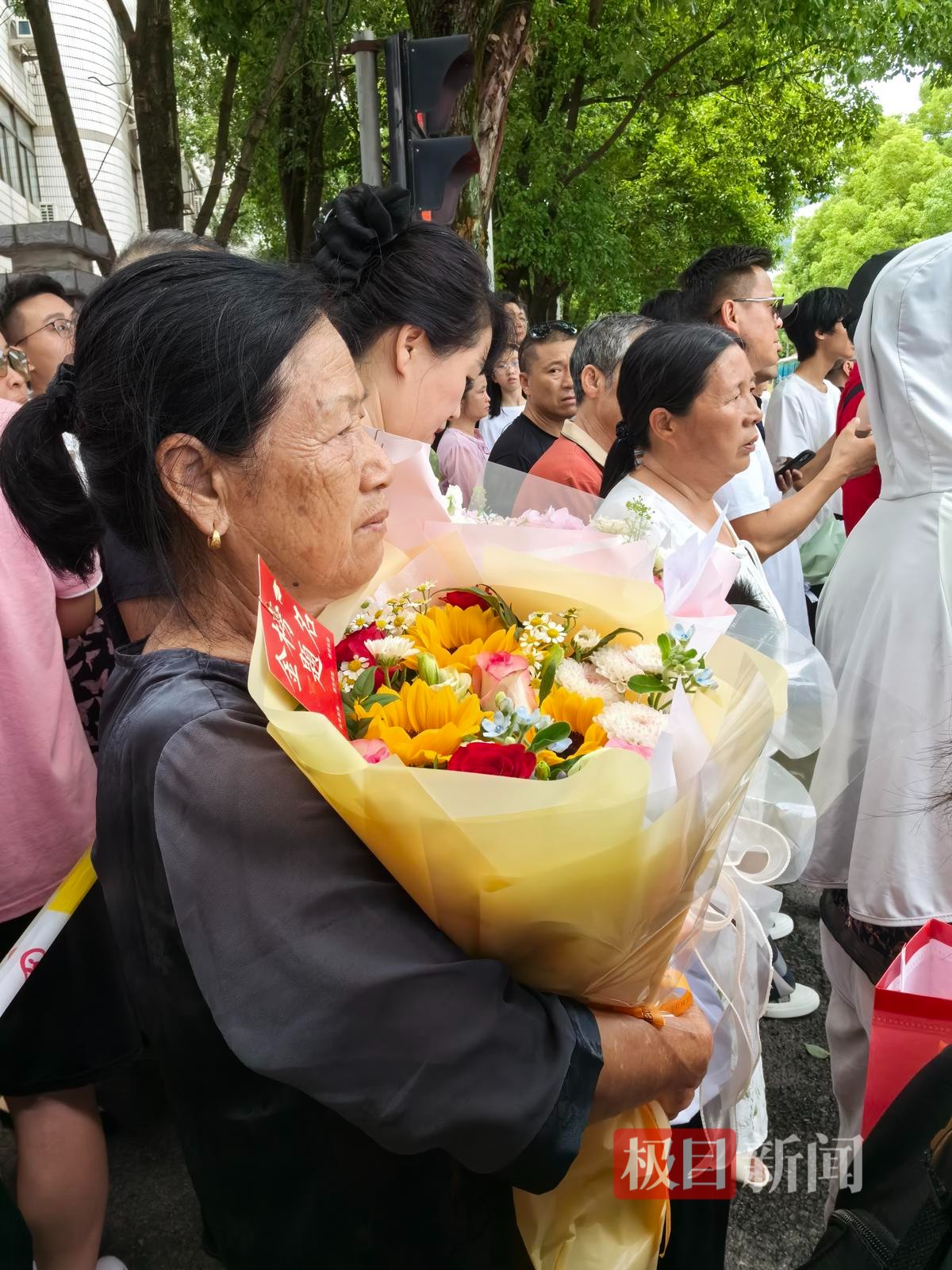 “祝福孙女金榜题名,考上985。”周婆婆告诉极目新闻记者,她和儿媳妇特意到花店购买了鲜花,送给走出考场的孙女,祝福孙女高考取得好成绩。