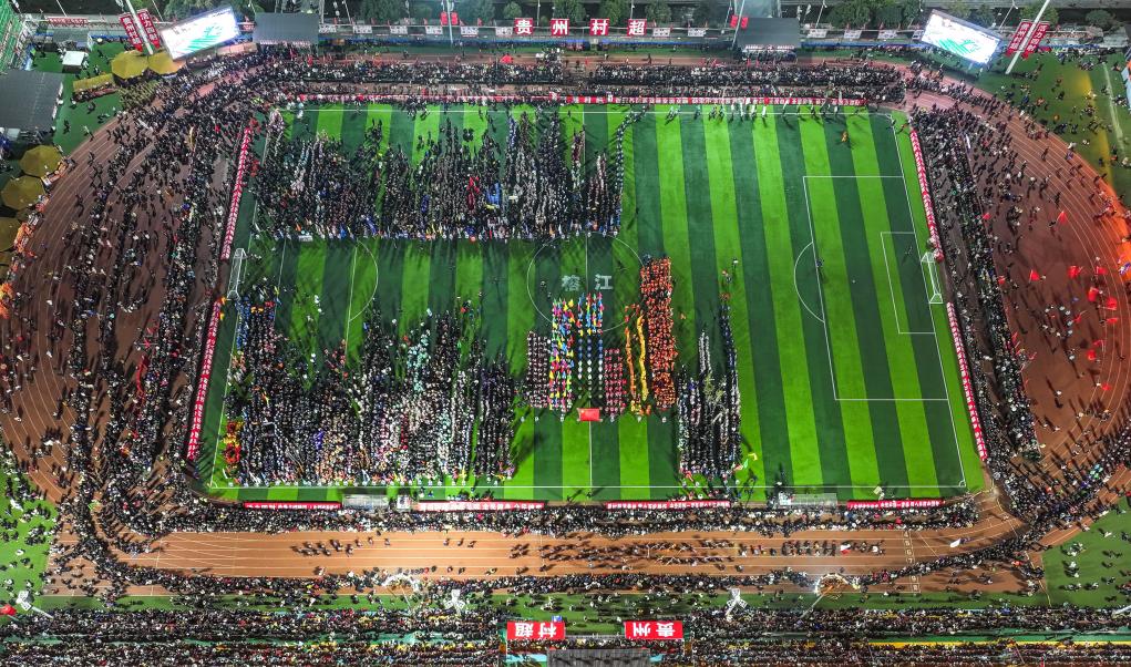 这是2025年贵州“村超”开幕式现场(2025年1月4日摄,无人机照片)。 新华社记者 杨文斌 摄