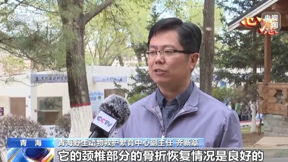 青海野生动物救护繁育中心副主任 齐新章:通过检查结果的影像来看,它的颈椎部分的骨折恢复情况是良好的,但是神经依然存在轻度的压迫,还有水肿和炎症的情况。