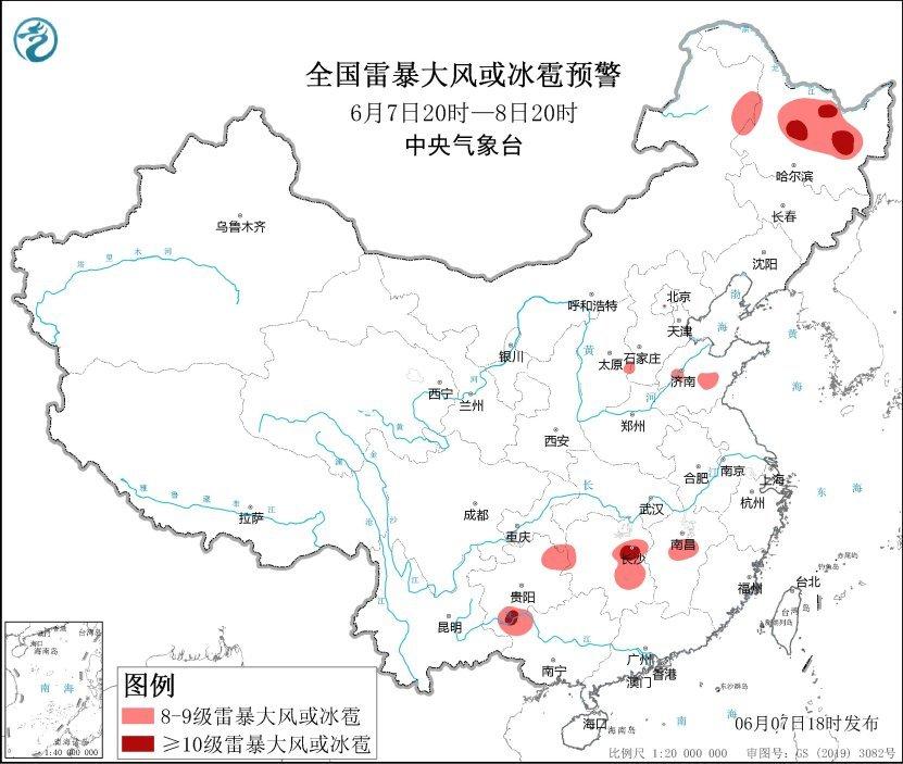 东北地区北部、黄淮、江南中部、西南地区东南部等地的部分地区将有8级以上雷暴大风或冰雹天气,其中,黑龙江中北部、湖南东部、贵州西南部等地的部分地区将有10级以上雷暴大风,最大风力可达11级以上;
