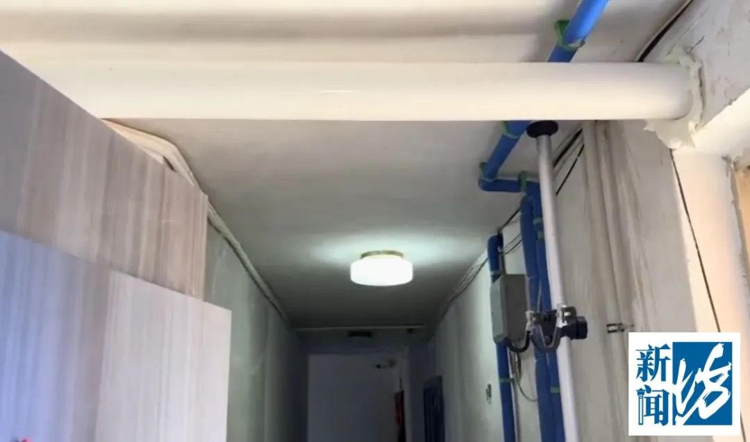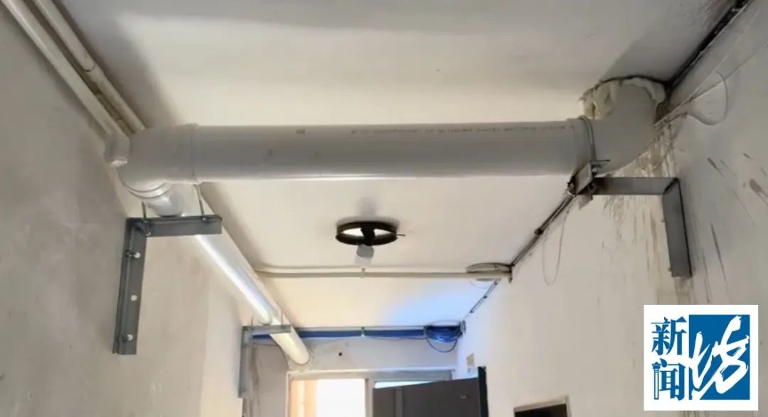最近,家住虹口区兴华小区某号204室的业主陈女士向《新闻坊》同心服务平台反映称,一个月前她突然发现家门口的天花板上多了一根排污横管!