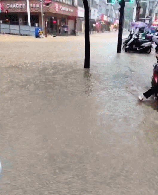 受强降雨影响,东兰县城区个别路段发生内涝,其中陵园路口路段和曲江路医院路口至霸凌桥水深约0.5米,向阳新城向阳路口至中医院路口水深约0.8米,路边门店被淹,两部小车在内涝路段中间被水浸泡。