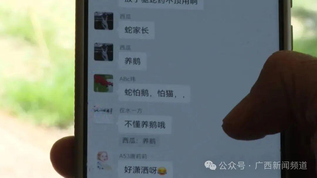 南宁市通发园小区业主戴先生 现在反正群里就说了,养鹅可以起到驱蛇作用,我见他们在议论,我搞不清楚。