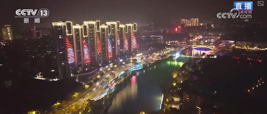 夜游釜溪:半城青山半城楼彩灯辉映碧水流