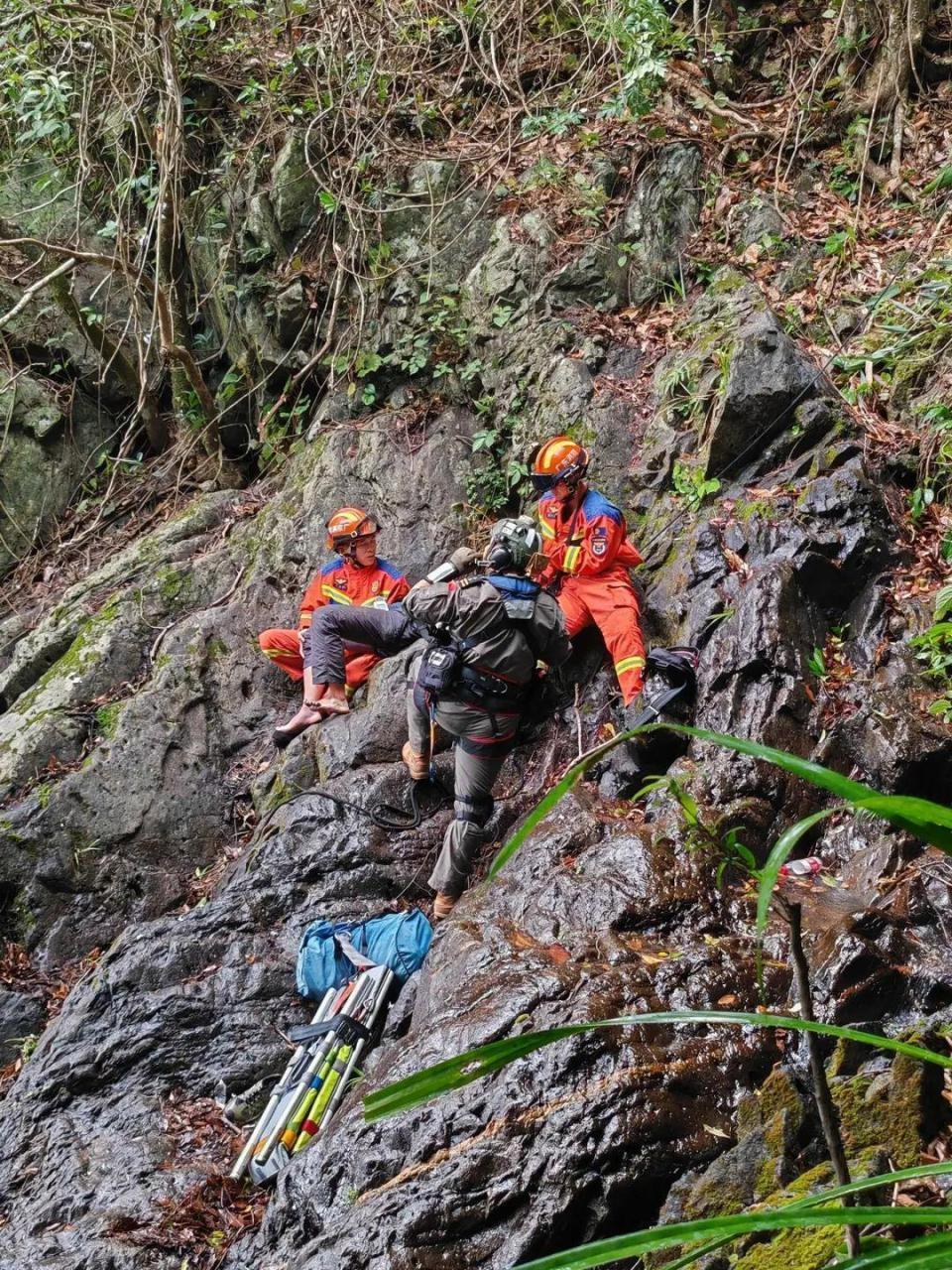 由于事发地山势陡峭、深夜视野极差,消防员徒步攀爬险峻山路,艰难搜救。抵达现场后,发现伤者已陷入昏迷,头部有明显撞击伤,出现瞳孔出血,双耳出血症状,同时大腿骨折,腰部摔伤。伤者所处位置三面环山,一侧紧邻悬崖,地形狭窄,无法使用担架转移,稍有不慎就可能再次坠落。