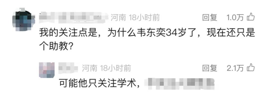 至于韦东奕的“研究员”职称,其表示,高校里教师的岗位会按照工作侧重方向分为教学岗、教学科研岗、科研岗,“韦东奕的‘研究员’职称,可能只是一个岗位,而不是正式的职称”。