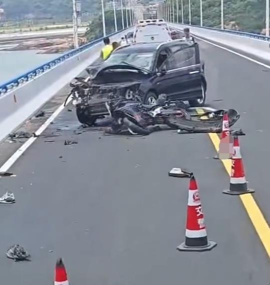 6月9日,有消息称,温州市洞头区元觉大桥发生摩托车与汽车相撞事故,摩托车骑行者坠海。视频显示,汽车车头变形,摩托车倒在地上受损严重,交警已到场处置。