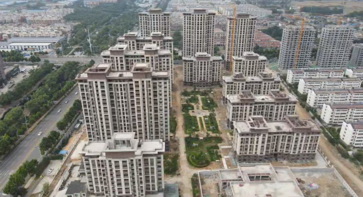 涉事小区航拍,业主称工地极少人施工。图/受访业主提供。