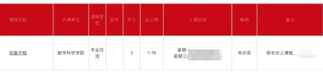 北大官网显示,韦东奕所在部门为数学科学学院的微分方程教研室,职称为研究员,从2019年底开始担任助理教授。本学期有一门“双曲方程”的课程,上课时间分别是周一和周三。