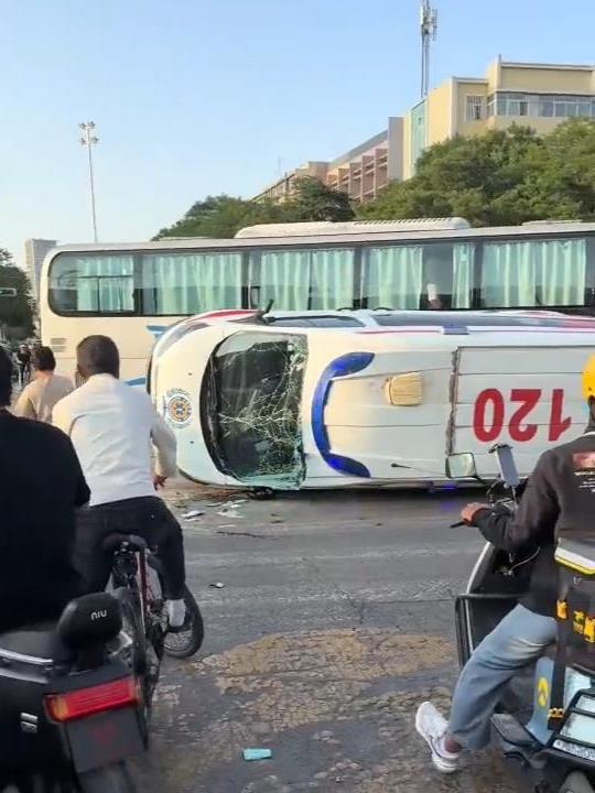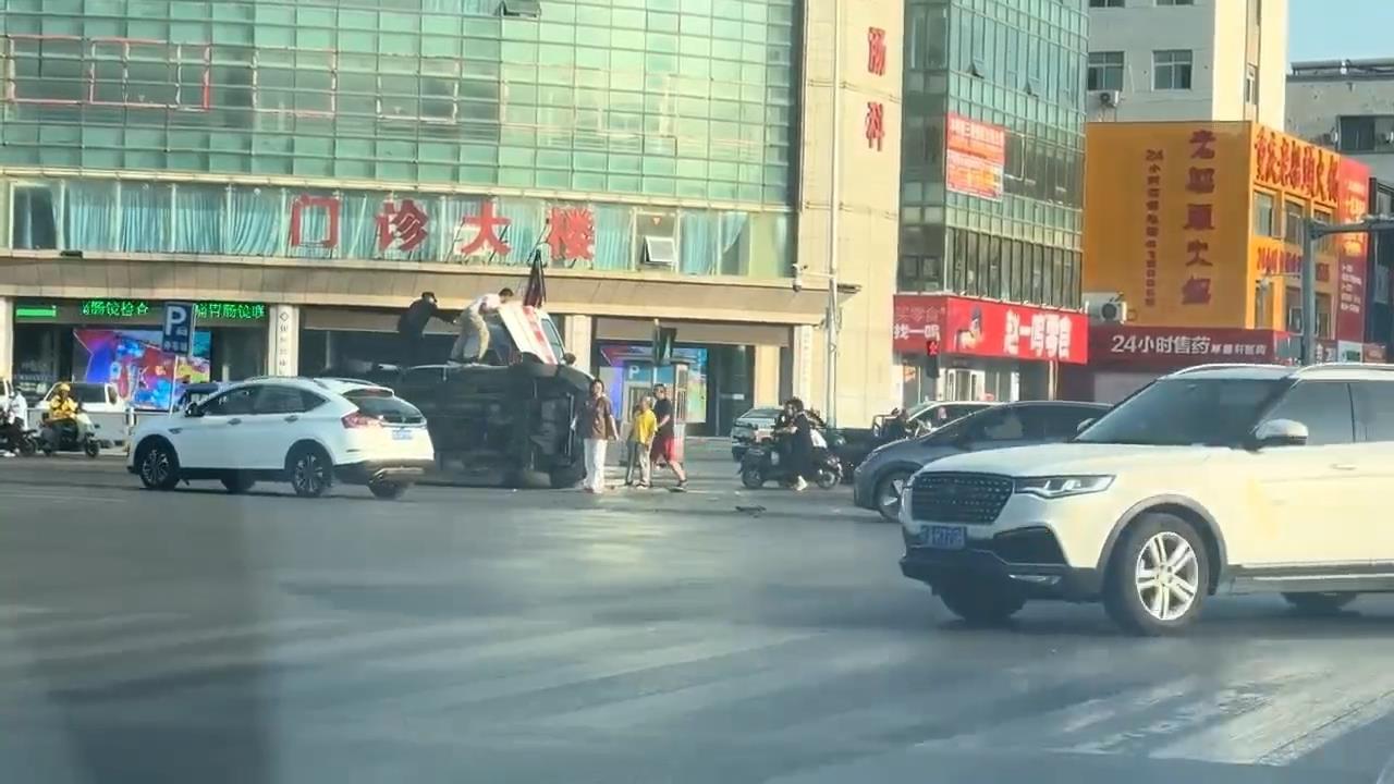 6月10日,有多位网友发视频称,银川市一辆救护车在十字路口和一辆私家车相撞,救护车遭撞击后侧翻,周围有市民上前打开车门救援。