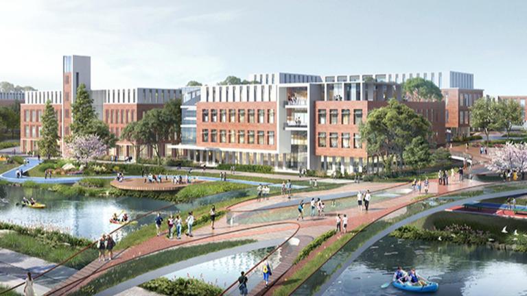 目前,宁波市政府已选定校址并规划用地总规模约2,300亩。校园位于甬江科创区的高教园区与制造业板块之间,永久校区(第一期)预计于2025年建成。