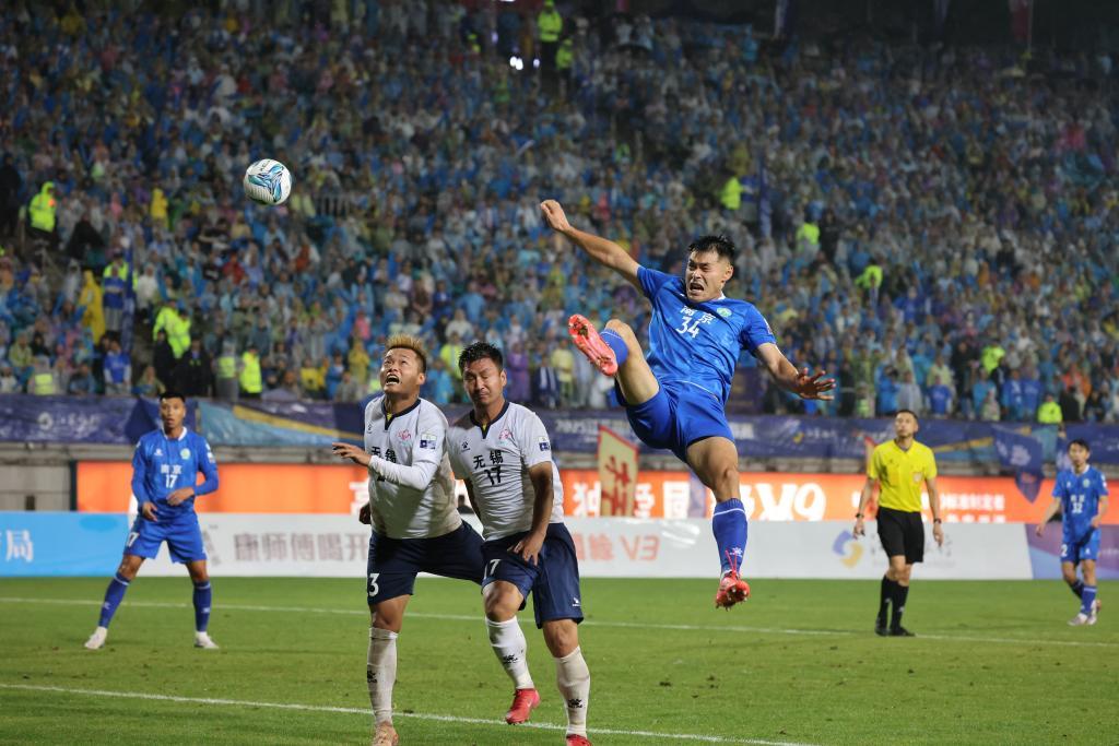 ↑这是6月1日拍摄的2025年江苏省城市足球联赛第三轮南京队对阵无锡队的比赛现场。
